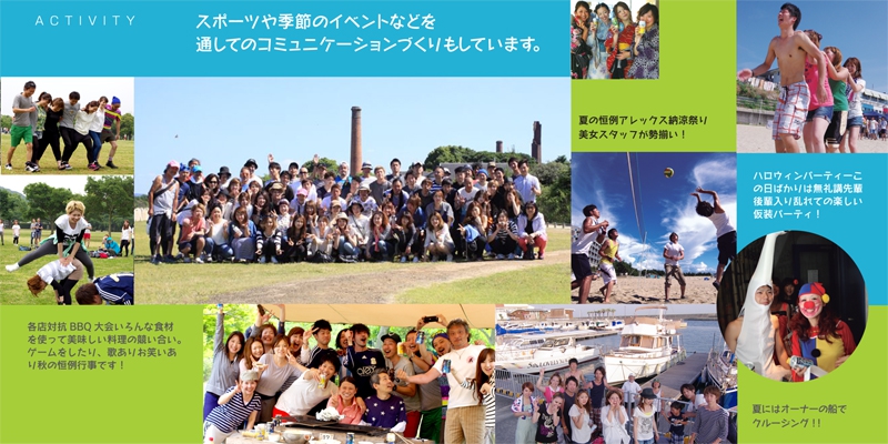 私たちアレックスは、トータルファッションリーダーとしてのプロフェッショナルリズム、自覚と責任…、そして、グローバルな視野を持ち、仕事に対する達成感を共有できるスタッフ(仲間)を求めています。